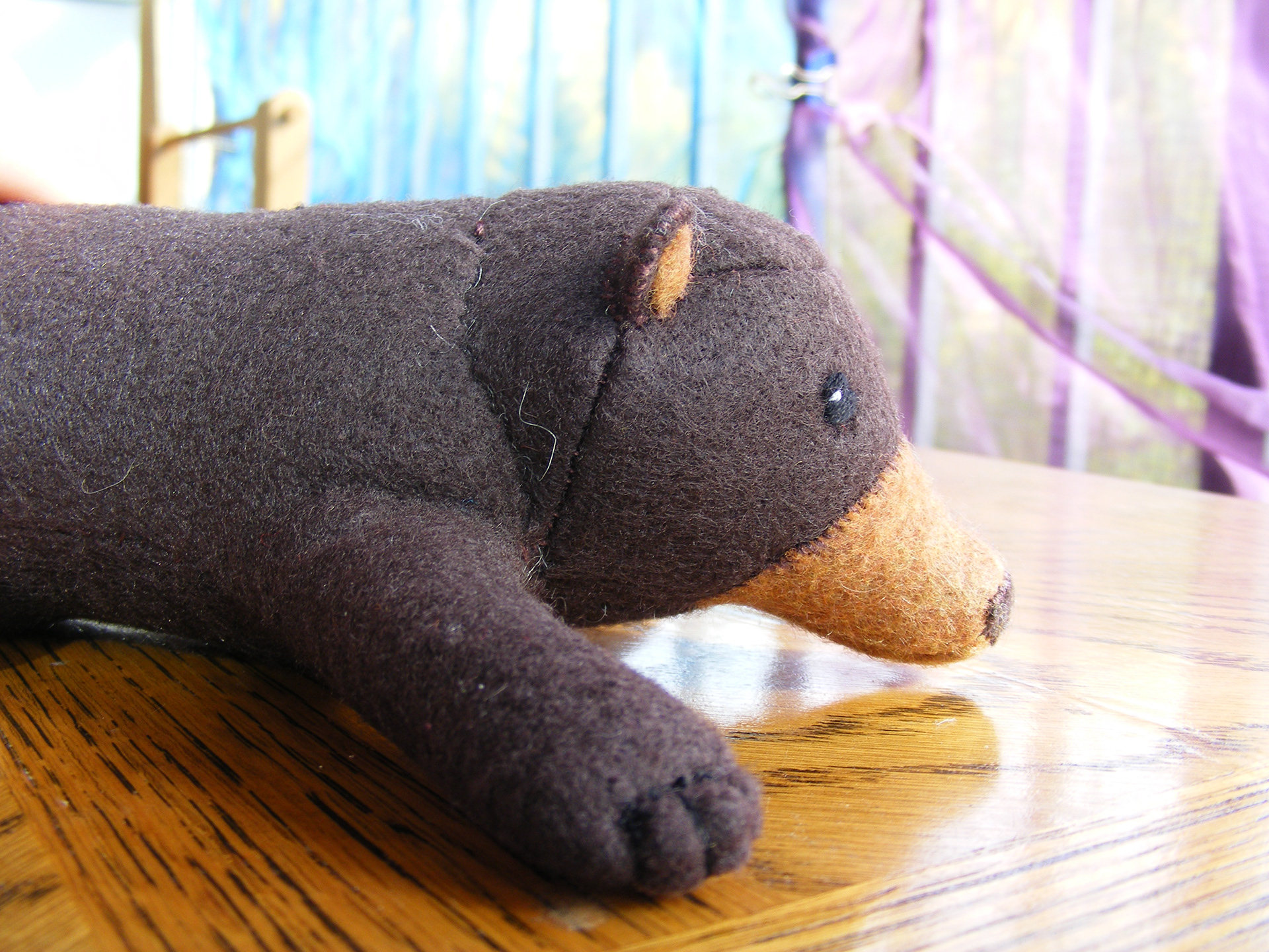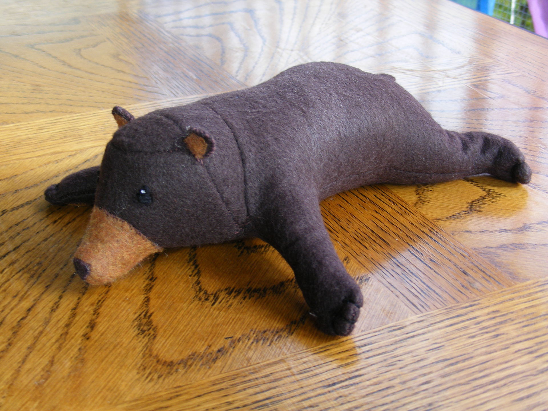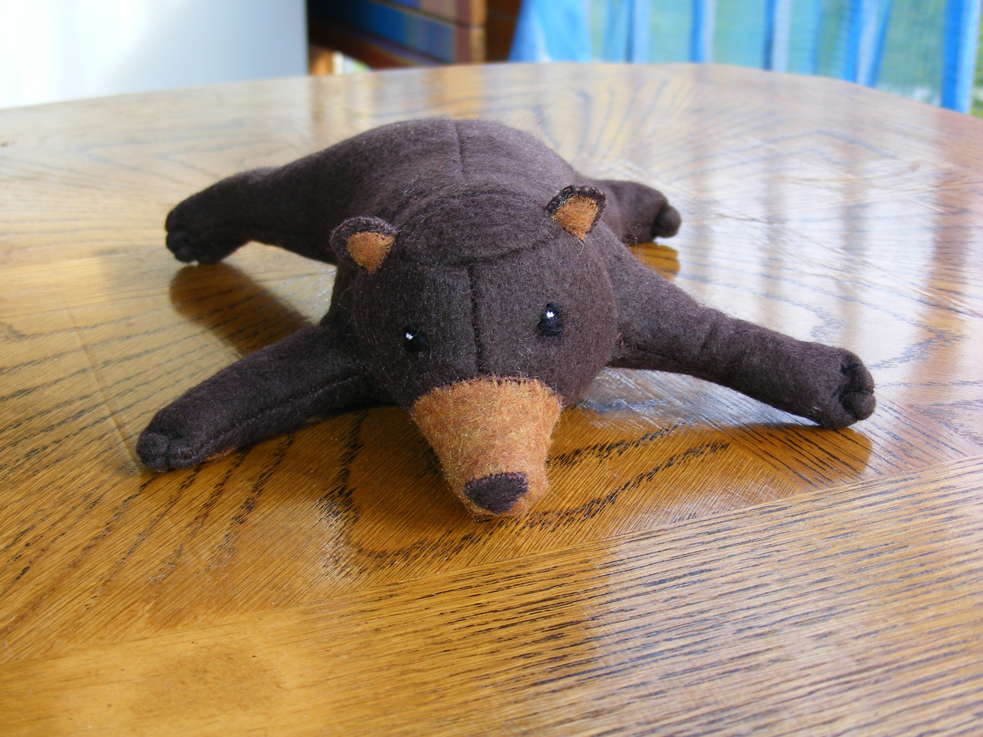 One of the very first toys I made, under the first name, Felt Original Toys. I don't have a pattern for this guy, so he's entirely one of a kind! If you'd like to commission your own bear or other buddy, shoot me a message below!